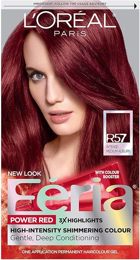 L Oreal Paris Feria Power Reds High Intensity Shimmering Colour Highlightening Permanent Haircolor Kit R57 Intense Medium Auburn Nationwide Campus